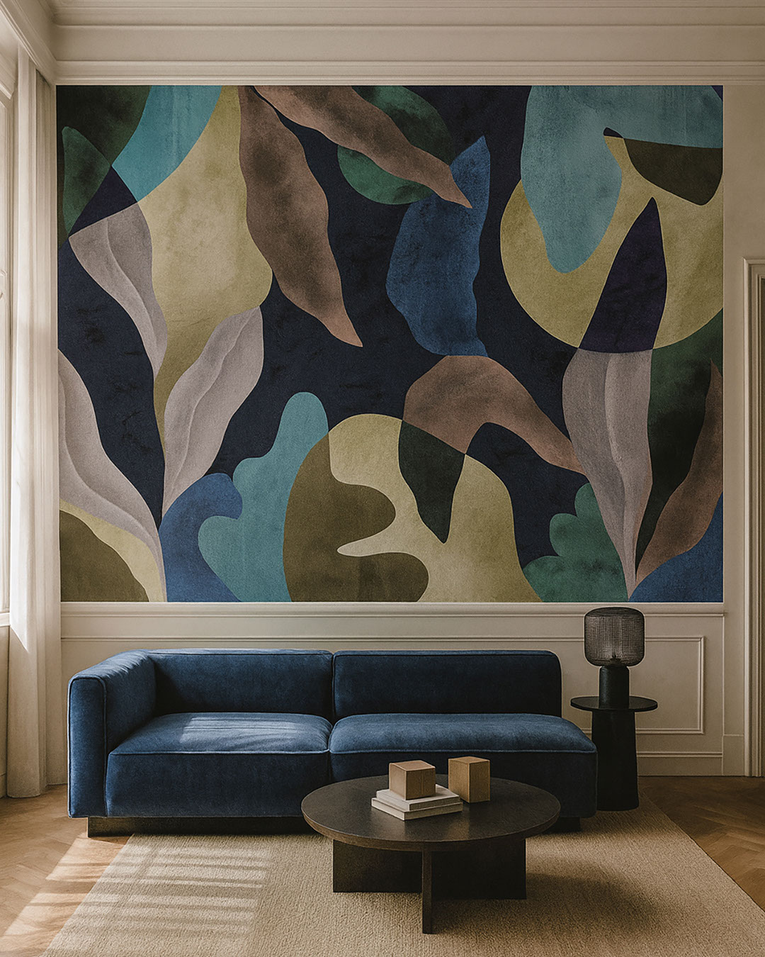Noctelle vermittelt die Stimmung nächtlicher Ruhe durch geschichtete abstrakte Formen in kühlen Grün-, Türkis- und Blautönen. Das Design wirkt intensiv und zugleich elegant, schafft aber eine behagliche Atmosphäre. Harmoniert ausgezeichnet mit dunklem Holz, matten Oberflächen und gezielter Akzentbeleuchtung. Noctelle eignet sich für moderne Wohnzimmer, stimmungsvolle Schlafzimmer und kreative Studios. Perfekt für alle, die ein mutiges, aber stilvolles Gestaltungselement suchen.