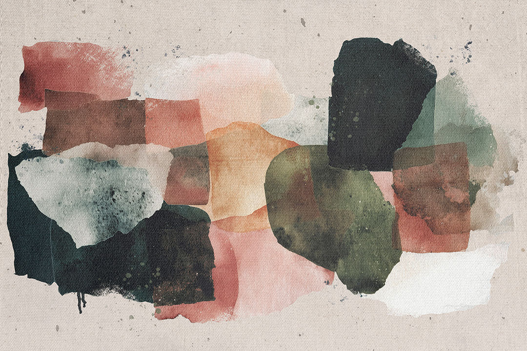 Pigmenta besteht aus großen, sich überlappenden Aquarellformen in einer sanften, natürlichen Farbpalette. Terrakotta-, Grün-, Graphit- und Altrosatöne schaffen eine künstlerische, moderne Atmosphäre und verleihen dem Raum gleichzeitig Wärme und Behaglichkeit. Dieses Wandbild eignet sich ideal für Wohn- und Esszimmer, offene Büros oder Kreativstudios, wo eine Akzentwand ohne realistische Szene gewünscht ist. Pigmenta harmoniert perfekt mit minimalistischen Möbeln, hellem oder geschwärztem Metall, Naturholz und neutralen Textilien. In skandinavisch oder japanisch inspirierten Interieurs verleiht das Design Tiefe und bewahrt gleichzeitig ein Gefühl von Offenheit und Luftigkeit. Es passt sich mühelos vielen Stilen an, von kunstorientierten Lofts bis hin zu gemütlichen Familienräumen mit farbenfrohen Akzenten.