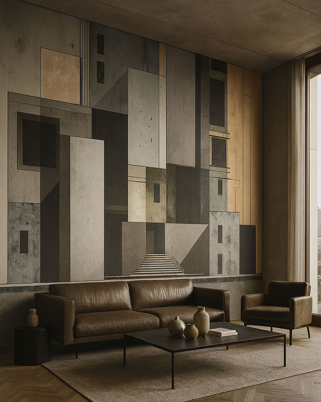 Modulus vermittelt einen urbanen architektonischen Eindruck durch geschichtete geometrische Blöcke und strukturierte Oberflächen. Die monochrome Palette und klaren Linien erzeugen eine moderne, anspruchsvolle Ausstrahlung. Das Wandbild verleiht Räumen Tiefe und strukturellen Charakter. Es eignet sich besonders für Loft-, Minimal- und Industrial-Interieurs. Modulus harmoniert hervorragend mit Beton, Naturholz und metallischen Akzenten. Mit geeigneter Beleuchtung betont es Wandstrukturen und steigert die visuelle Komplexität. Eine ausgezeichnete Wahl für Büros, Wohnräume und kreative Bereiche mit zeitgenössischer Ästhetik.
