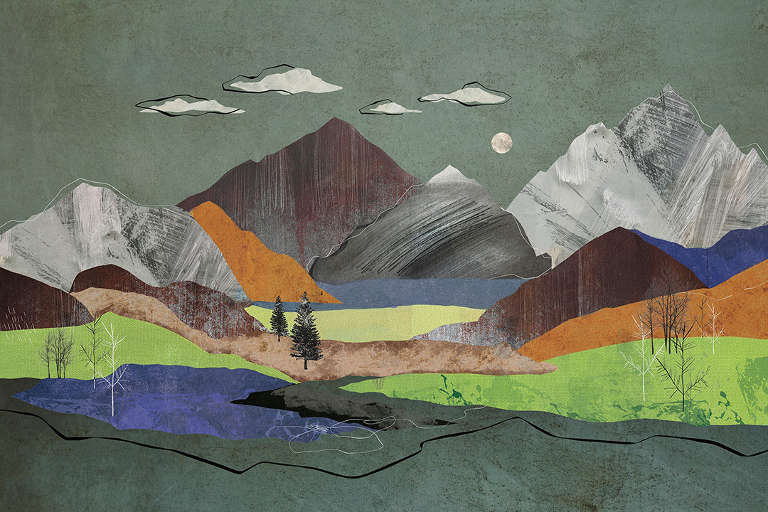 Montara stellt eine malerische Berglandschaft dar, geschaffen durch geschichtete Texturen und collageartige Farbfelder. Das Wandbild verleiht dem Raum Tiefe und Bewegung und macht ihn lebendig und ausdrucksstark. Sattes Grün, Blau und Terrakotta erzeugen ein harmonisches natürliches Gleichgewicht. Montara eignet sich für moderne und eklektische Interieurs, die einen markanten Blickfang benötigen. Es harmoniert hervorragend mit Naturmaterialien wie Holz und Stein. In großzügigen Räumen verstärkt es das Gefühl von Weite und landschaftlicher Perspektive. Eine ausgezeichnete Wahl für Wohnzimmer, Homeoffices und kreative Bereiche.