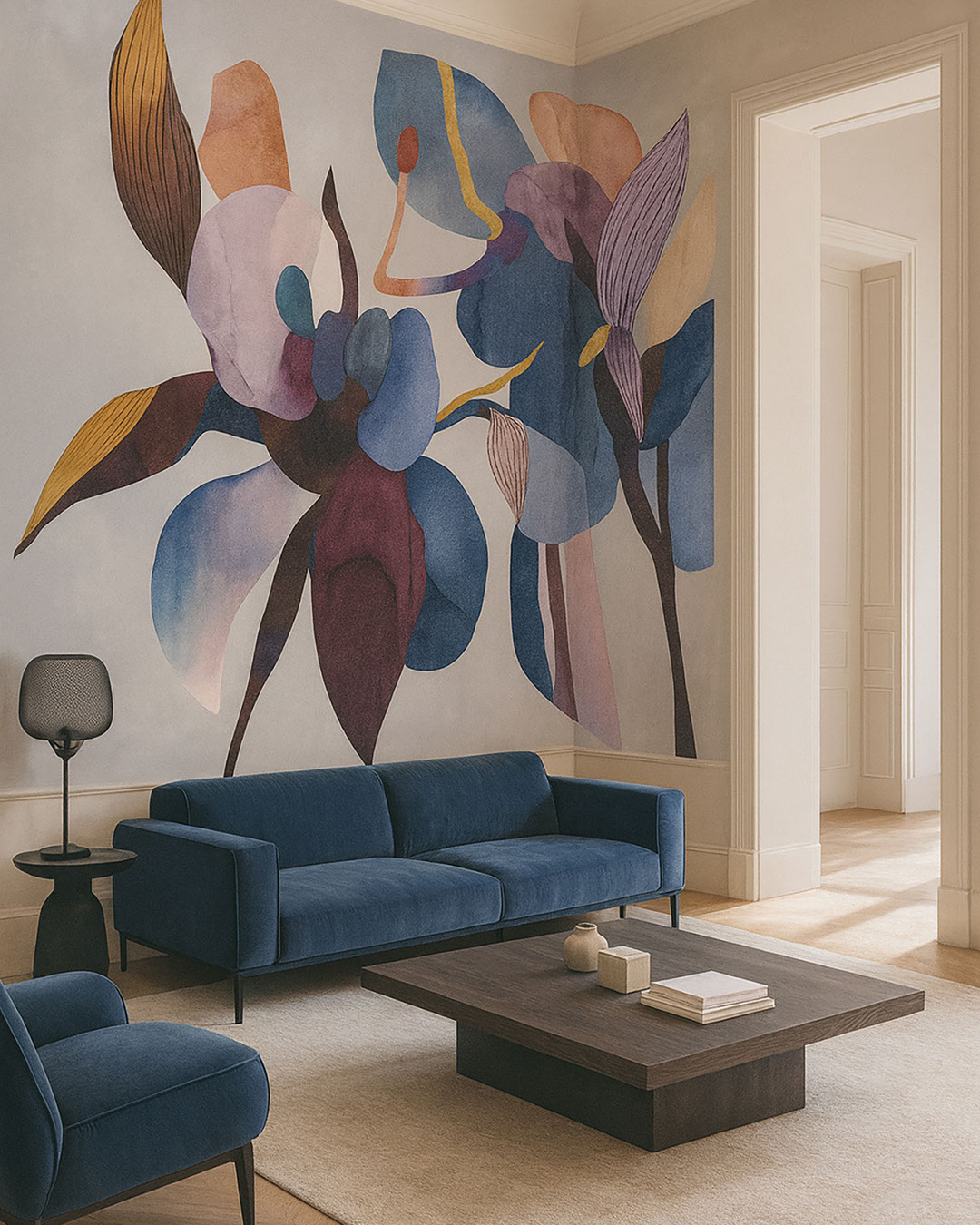 Florena zeigt die Zartheit von Aquarellstrichen, die abstrakte Blumenformen in einer sanften Pastellpalette bilden. Das Wandbild verleiht dem Raum Leichtigkeit und elegante Luftigkeit. Es eignet sich ideal für Schlaf-, Kinder- und helle Wohnräume. Sanfte Farben schaffen eine beruhigende und harmonische Atmosphäre. Florena harmoniert gut mit natürlichen Texturen und Möbeln aus hellem Holz. Bei sanfter Beleuchtung erhalten die floralen Formen zusätzliche Tiefe. Eine ideale Wahl für Interieurs, die eine poetische und feinsinnige Stimmung suchen.