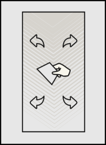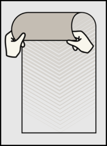 Es ist strengstens untersagt, das Material beim Anbringen horizontal oder vertikal zu dehnen. Dies kann zu einer Verzerrung des Motivs führen, da sich das Material nach der Montage wieder in seine ursprüngliche Größe zurückzieht.